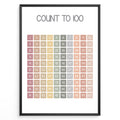 Indlæs billede til gallerivisning Pastel-colored number chart showing numbers 1 to 100 in a neat grid, framed as children’s educational counting wall art.