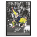 Cristiano Ronaldo fodbold plakat med ikonisk saksespark i gul trøje og dramatisk stadionbaggrund.