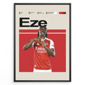 Eberechi Eze fodbold plakat i Arsenal rød og hvid hjemmebanetrøje med stilrent og moderne design