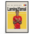 Uanset om det er på Camp Nou eller i internationale turneringer, har Yamal skabt sig et navn med bemærkelsesværdige præstationer og en brændende passion for spillet. Denne plakat indfanger øjeblikke af ungdommelig opfindsomhed, sejr og den dedikation, som Lamine Yamal bringer til fodboldverdenen.