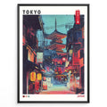 Tokyo Night Street Poster – Pagoda Temple & Lantern Alley Art Print