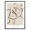 Indlæs billede til gallerivisning Minimalist line art of a couple kissing in a modern black frame on beige background.