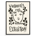 Indlæs billede til gallerivisning Framed Picasso Vallauris 1951 Exposition poster with black abstract portrait and floral designs on a cream background.